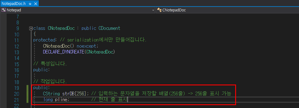 pDoc->pline++; // 줄을 하나 증가