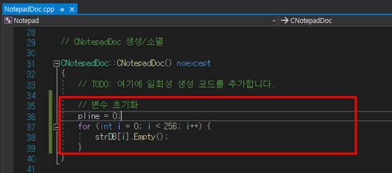 CString strDB[256] : 입력하는 문자열을 저장할 배열(256줄) -> 256줄 표시 가능