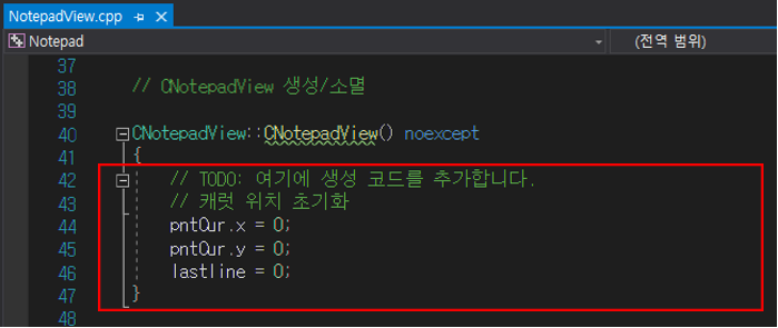 CNotepadDoc *pDoc : Document 포인터