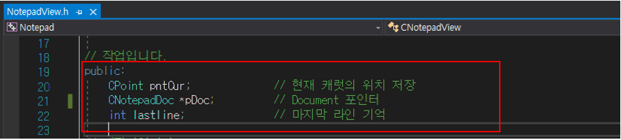 CPoint pntCur : 현재 캐럿의 위치 저장