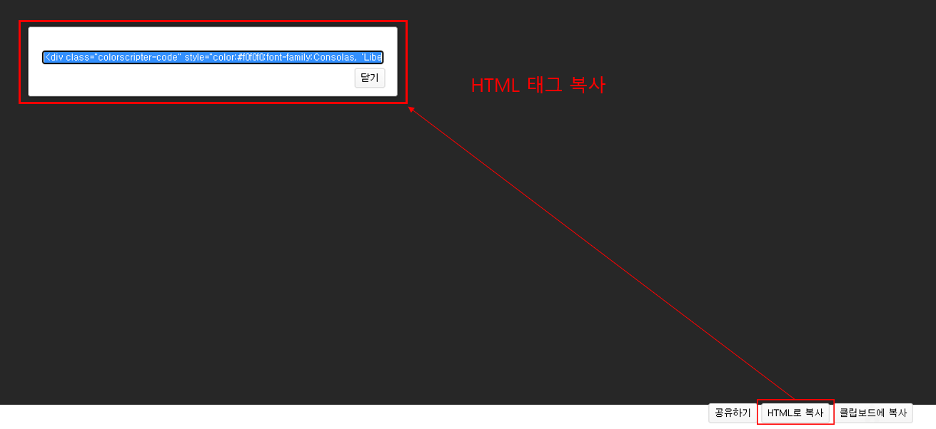 ③ 오른쪽 하단 "HTML로 복사" 버튼 클릭 및 HTML 태그 복사