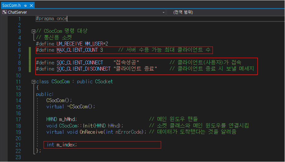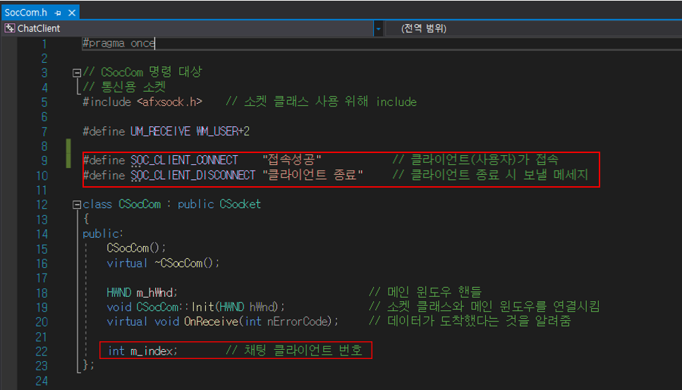 2. Client(SocCom.h) : 사용자 정의 메시지 및 사용자 지정 변수 추가