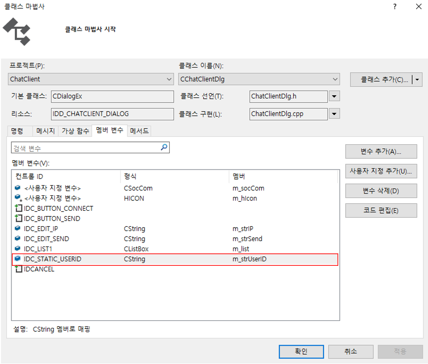 ① IDC_EDIT_USERID : 클라이언트가 몇 번째 사용자인지 알려줌(숫자는 0번부터 시작함)